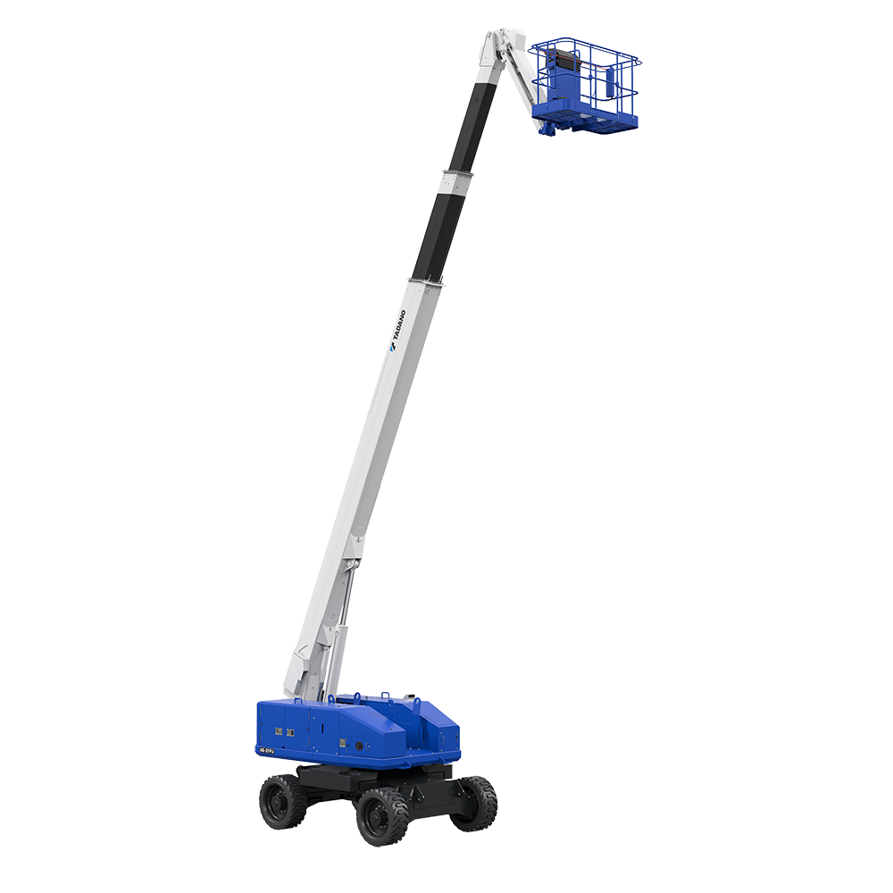 This 21-meter class wheel-type telescopic boom lift delivers exceptional height and reach performance with agile mobility. Featuring dual lifting capacities of 340 kilograms and 250 kilograms, the AS-21PJ achieves a maximum platform floor height of 20.9 meters and a platform working radius of 16.7 meters.