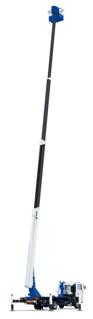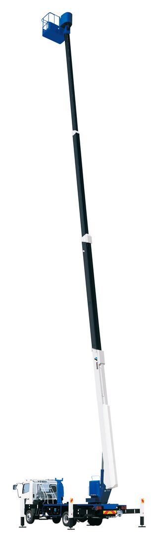 AT-270TG offers the maximum 27.0m bucket bottom height with telescopic boom. This model can be mounted on medium duty trucks. Straight line movement in any direction is achieved through integrated control of boom telescoping, elevating, slewing, and bucket swing. A full range of equipment to support safe and comfortable work, including bucket swing, boom automatic stowing system, elevating and slewing speed control system. The AMC (Automatic Motion and Moment Controller) automatically controls the work range by detecting the loading status and the outrigger position.