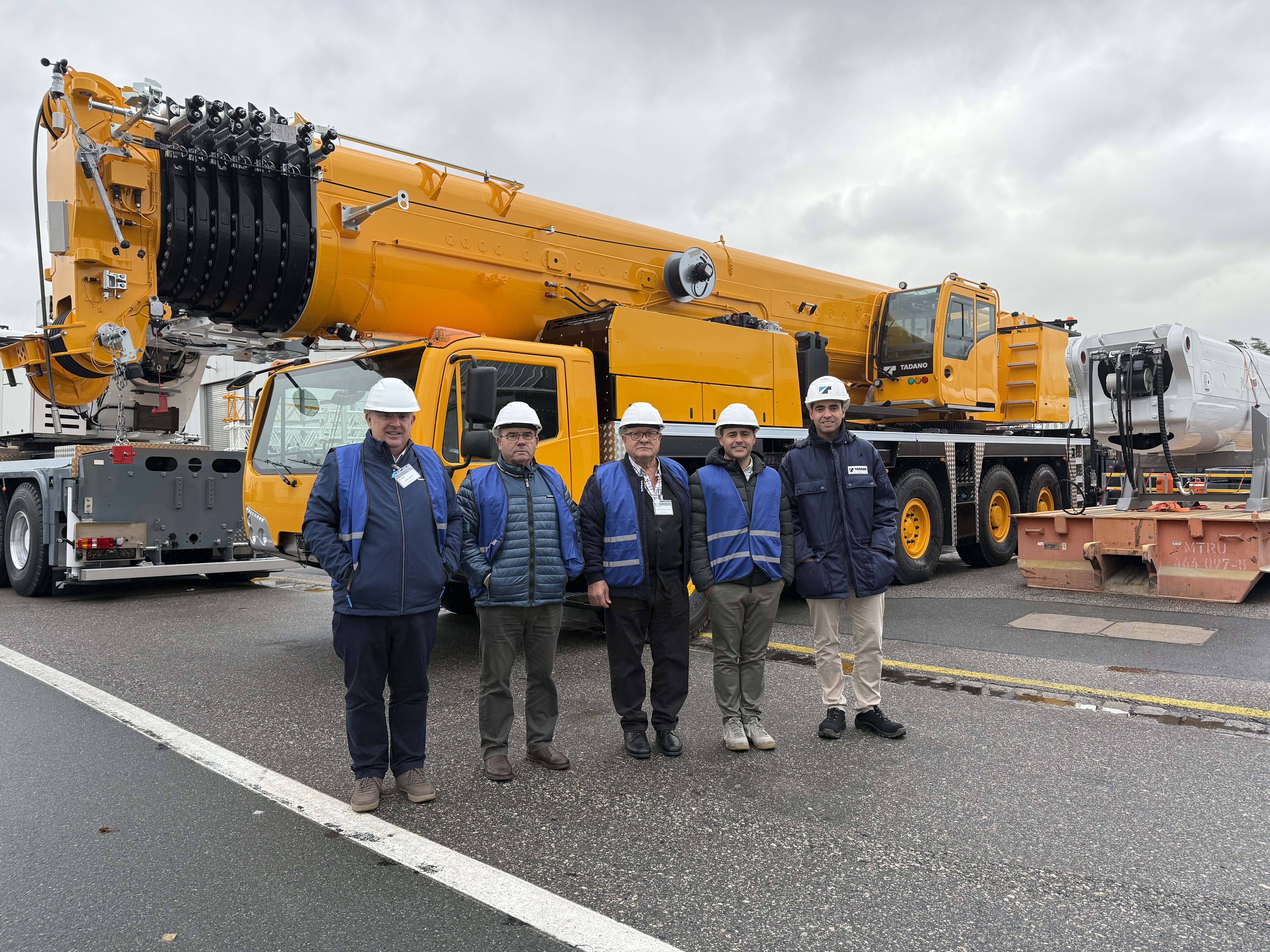 Vor der Auslieferung besuchten Vertreter von Talleres y Grúas Estación die beiden Tadano-Werke, um die Krane während des Fertigungsprozesses zu besichtigen: den AC 5.250L-2 in Lauf und den AC 7.450-1 in Zweibrücken. Die offizielle Übergabe der Krane erfolgte in Spanien durch Tadano-Vertriebsleiter Jenaro Vilanova.