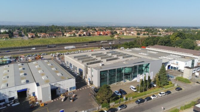 L’usine de San Cesario sul Panaro, dédiée aux grues à flèche articulée, s’appuie sur plusieurs décennies d’expertise dans le domaine du levage hydraulique. Le site combine les fonctions de recherche, de production et de service en un seul endroit.