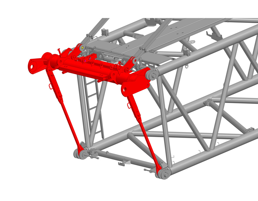 Normally, long booms need to be fully dismantled before relocating the base crane. The Quick Move Adapter connects the main boom pendants at various positions to the main boom after a front part of the main boom has been disassembled. By enabling partial rigging, this adapter allows for streamlined relocation while maintaining the crane’s operational readiness.