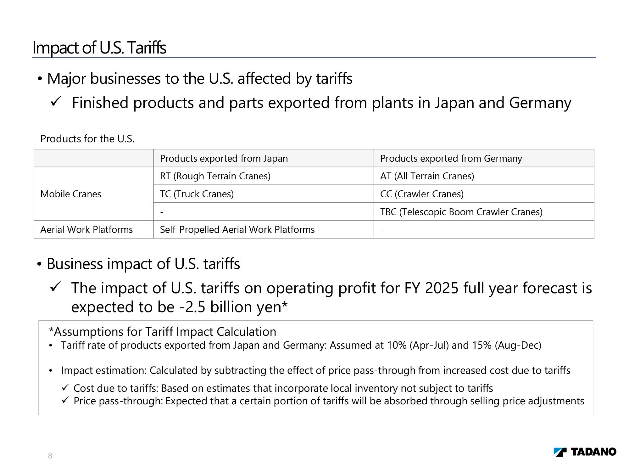 Tadano Ltd. Financial Explanatory Briefing