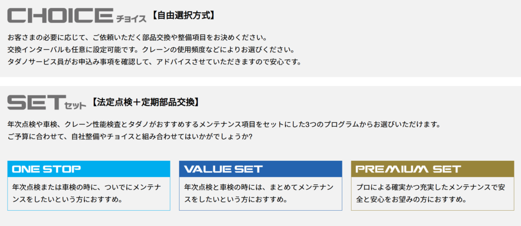 タダノメンテナンスパックは、専門の整備士による確実な技術で安全にクレーンをご使用いただき、そして、明確な費用で安心してメンテナンスを受けていただけるサービスです。