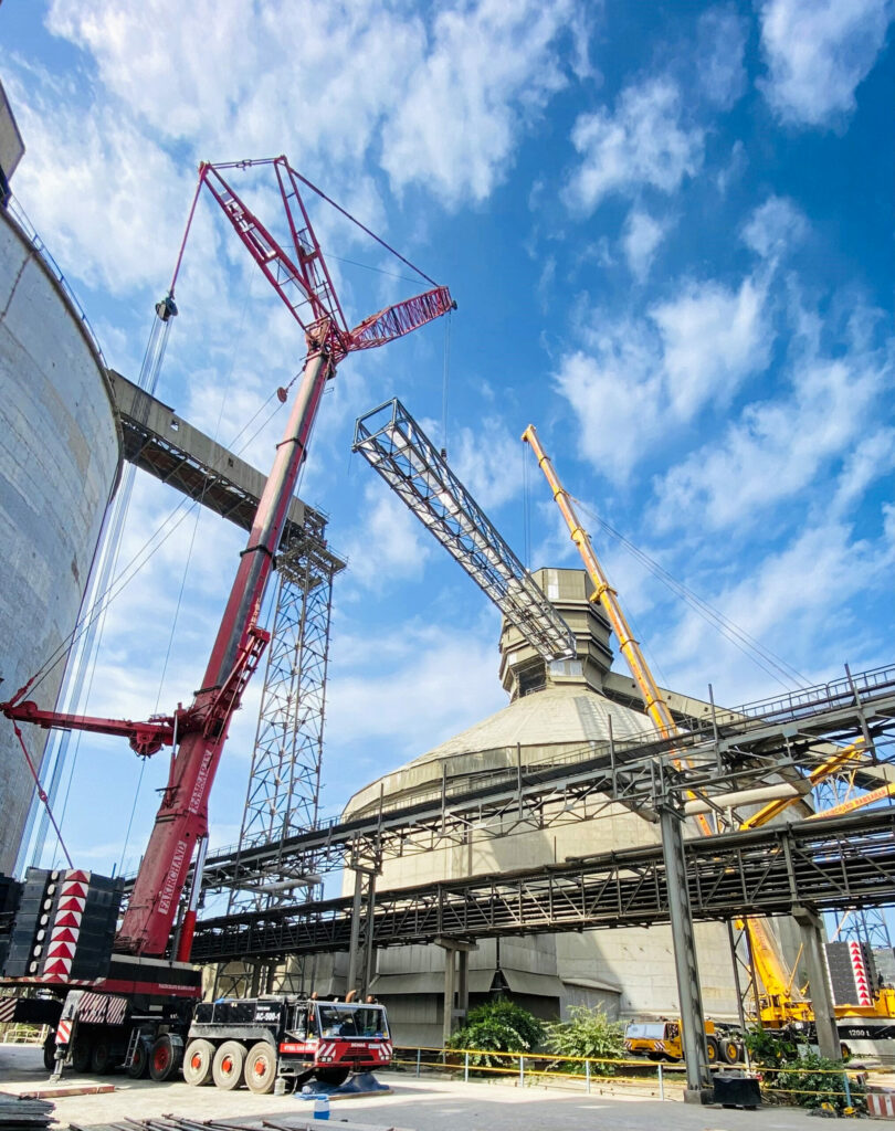 The job was part of a project to repair cyclone damage at a cement plant in the Indian state of Gujarat. One part of the conveyor bridge had been so badly damaged that it had to be completely replaced. “Obviously, we could have used one of our big Tadano lattice boom crawler cranes for this job,” explains Sunil Makad. “But in this case, the all terrain cranes proved to be the better option. That’s partly because we could get them to the site quicker, and partly because they were easier to position in the very limited space available at the site.”
