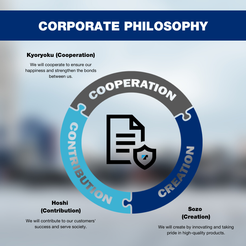 It all begins with our corporate philosophy of Sozo (Creation), Hoshi (Contribution) and Kyoryoku (Cooperation). This philosophy calls for tight-knit cooperation between people both inside and outside of the organization, in order to create products, technologies, and services that deliver value to the customer and to the society as a whole. To implement this corporate philosophy, our management strategy emphasizes balanced growth for both the company and the people whose lives it affects.