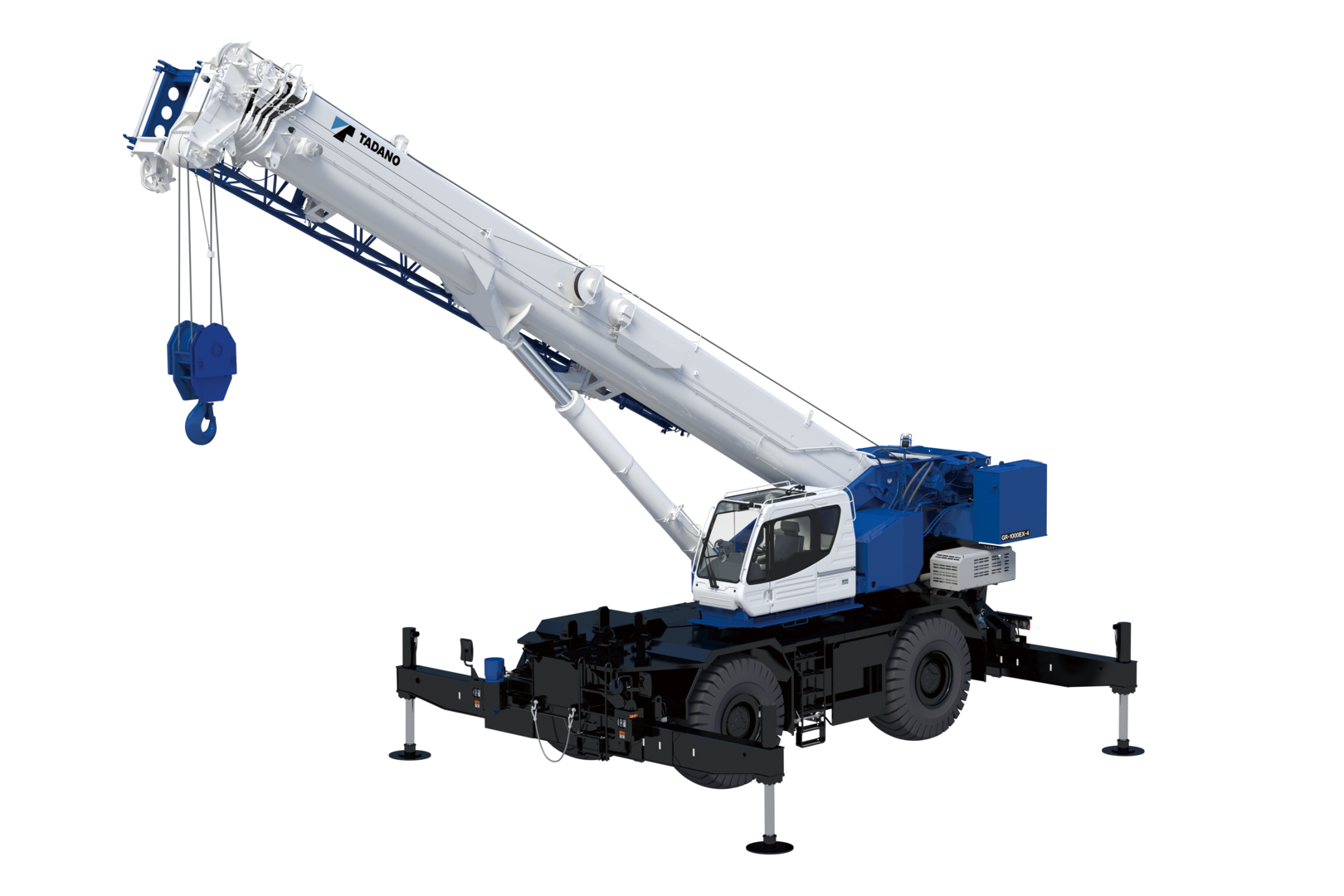 The GR-1000EX-4 holds the crown for the longest boom in the 100 t class. This crane, powered by a Cummins engine, boasts a 50.9m full power main boom and more counterweight than its little brother to give the operator the best possible chart and radius in the smallest package. This newly-redesigned rough terrain crane also sports creature comforts for the operator such as a tilting cabin, a side ladder that transforms into steps for better access and egress, and even USB chargers.