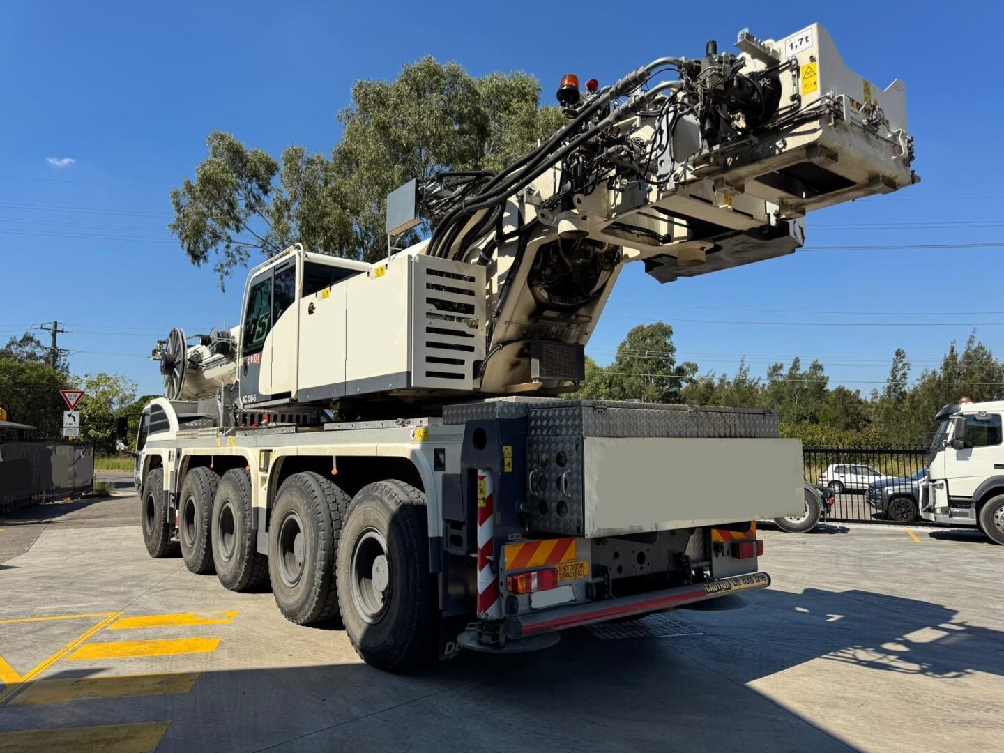 Located in New South Wales, this crane is available now and offers a 59.8m main boom for exceptional reach. It comes with a 42.2T counterweight for improved lifting capacity and features Asymmetric Outrigger Software for enhanced stability. Other features include a spare wheel & tyre, 5 sheave hook block, 3 sheave hook block, single sheave hook block & headache ball, and an auxiliary winch for versatile lifting capabilities. Additional equipment includes a Rooster Sheave, jump start receptacle, external overload warning lights (XMAS Tree), and lockable battery & starter isolators. The crane also includes a rear timber box for convenient storage.