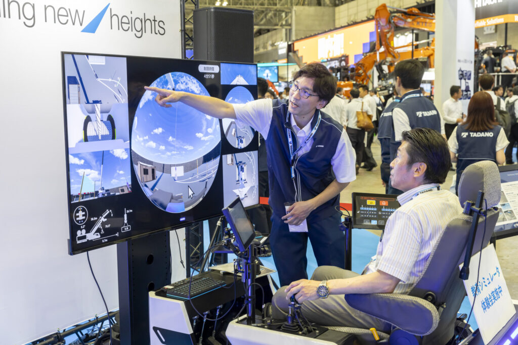 The Crane Operation Training Simulator allows operators to learn about and train to handle a wide range of scenarios from basic crane operations for various models to navigating work in the field across the wide potential landscape of job sites. Attendees were able to try out the features at the exhibition; they ranged from real crane operators to young children, who may be inspired to operate cranes in the future.